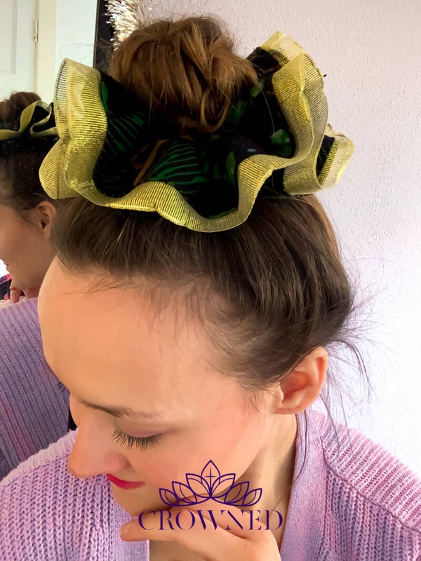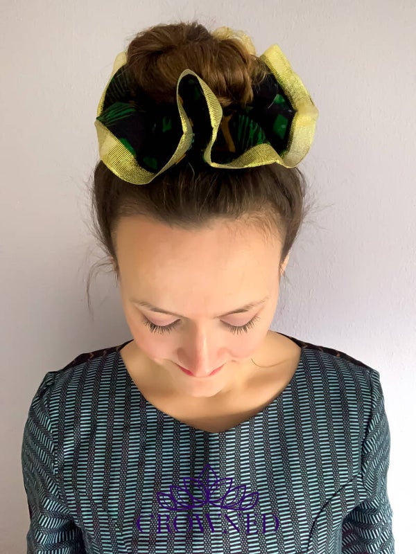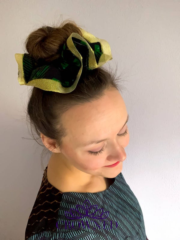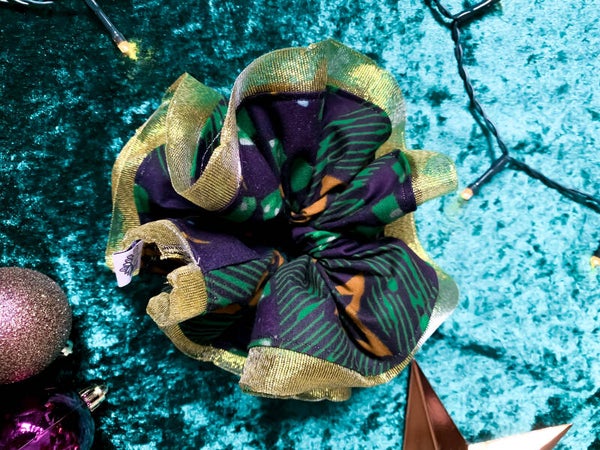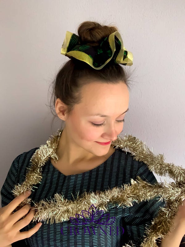 Feestdagen scrunchie! De prachtige groen met goud combinatie geeft een traditioneel, maar toch elegant kerstgevoel.